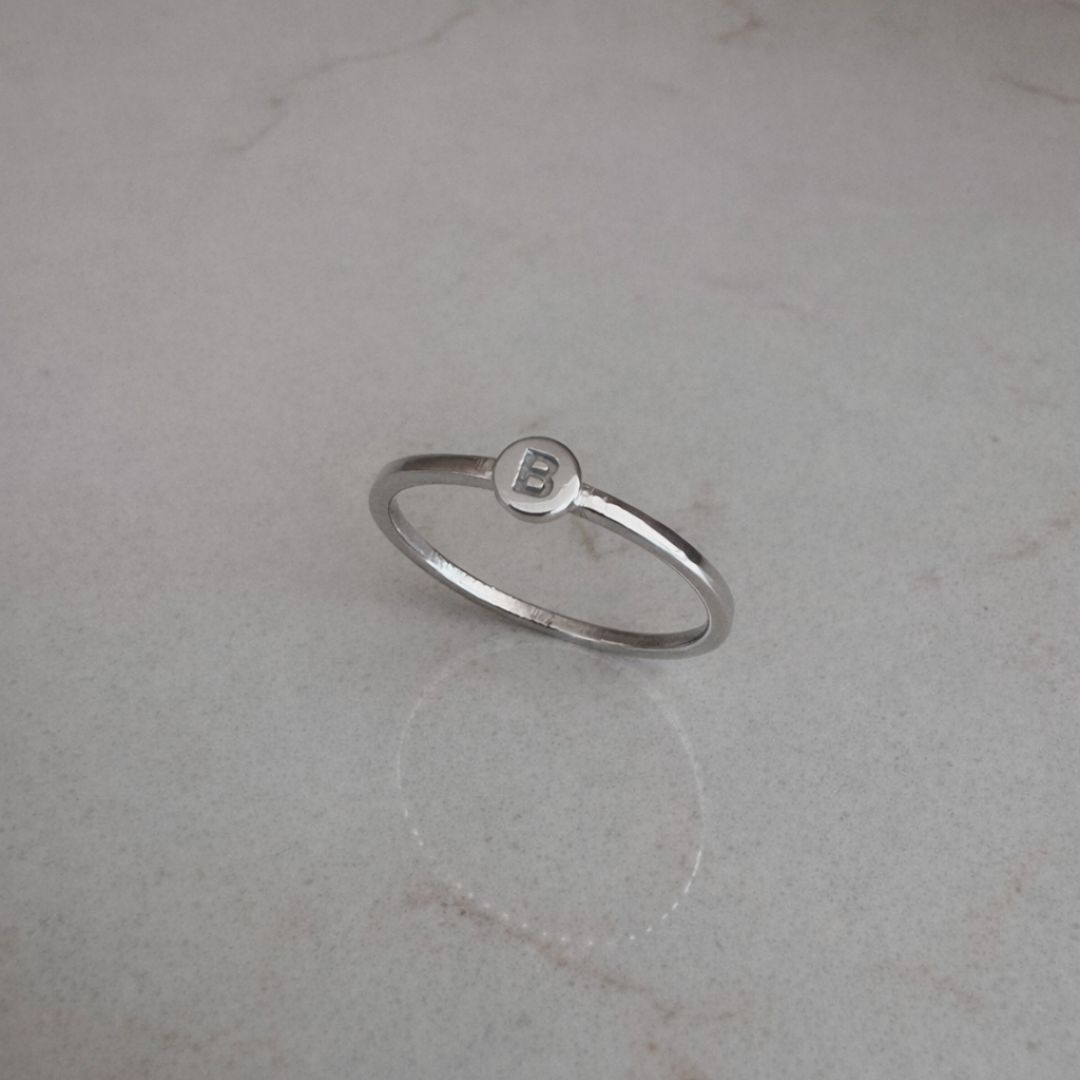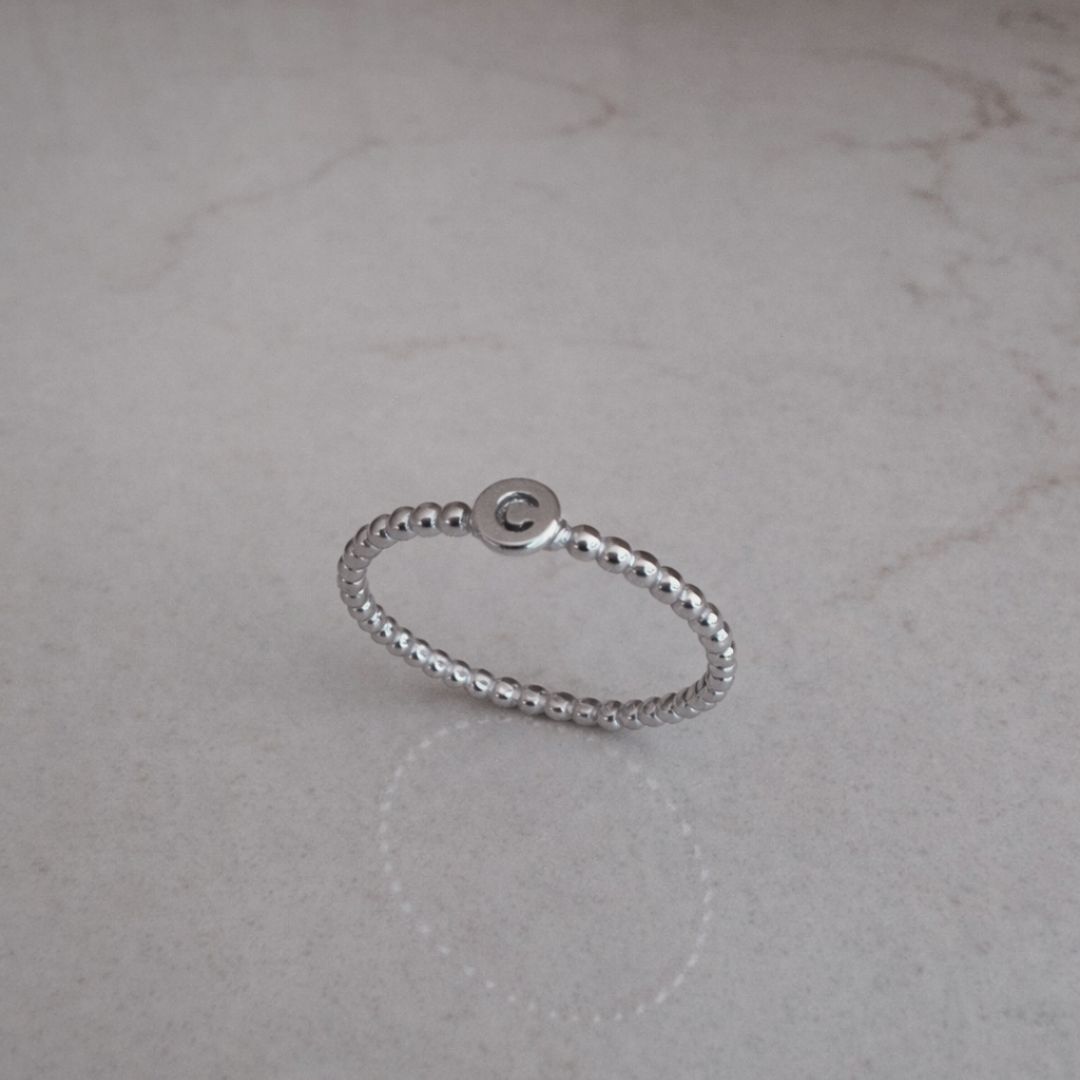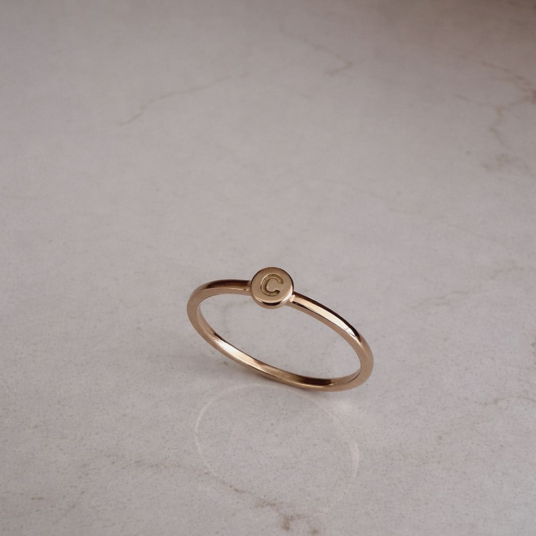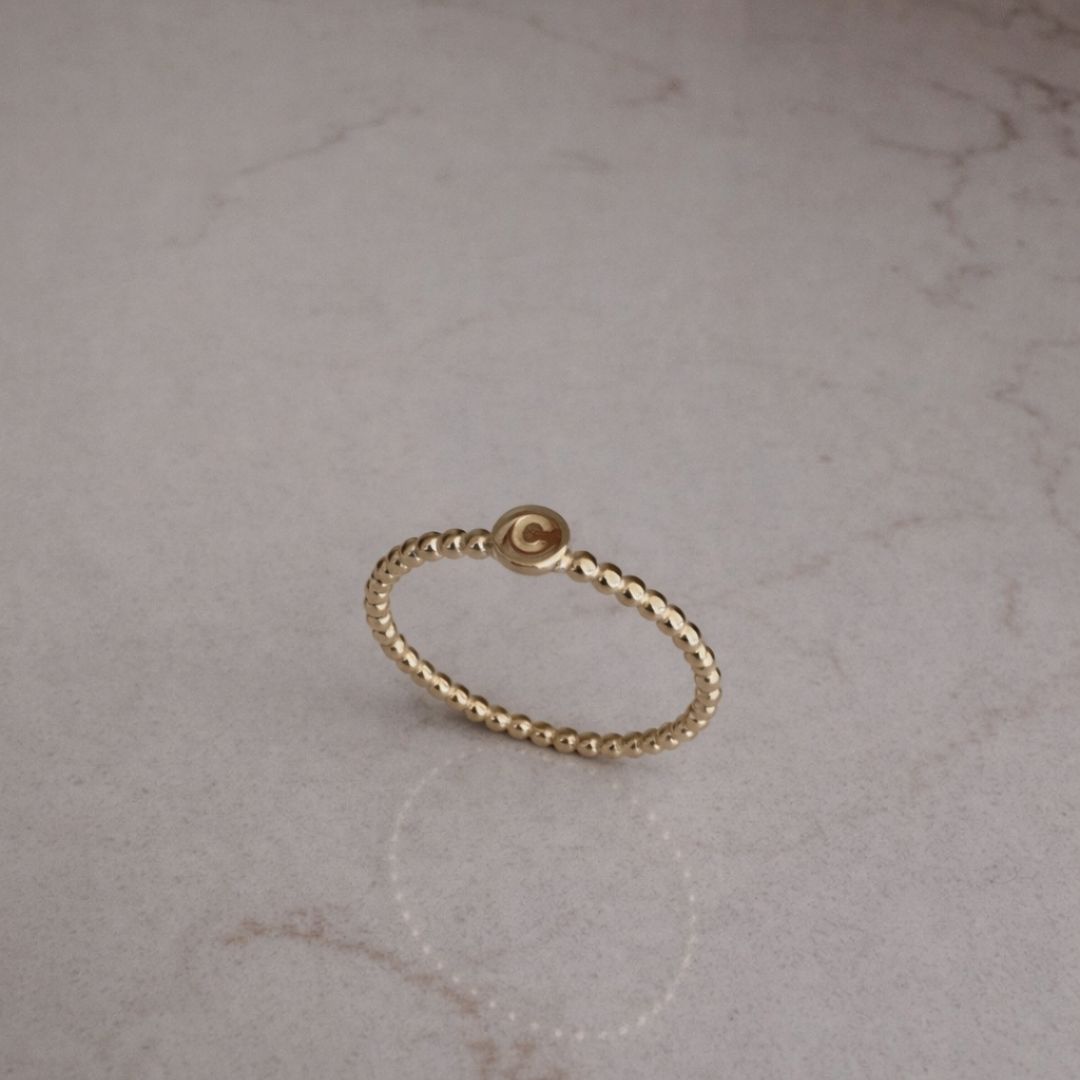 Fijne ringband 14K goud, met initiaal (Wit of geel goud).
