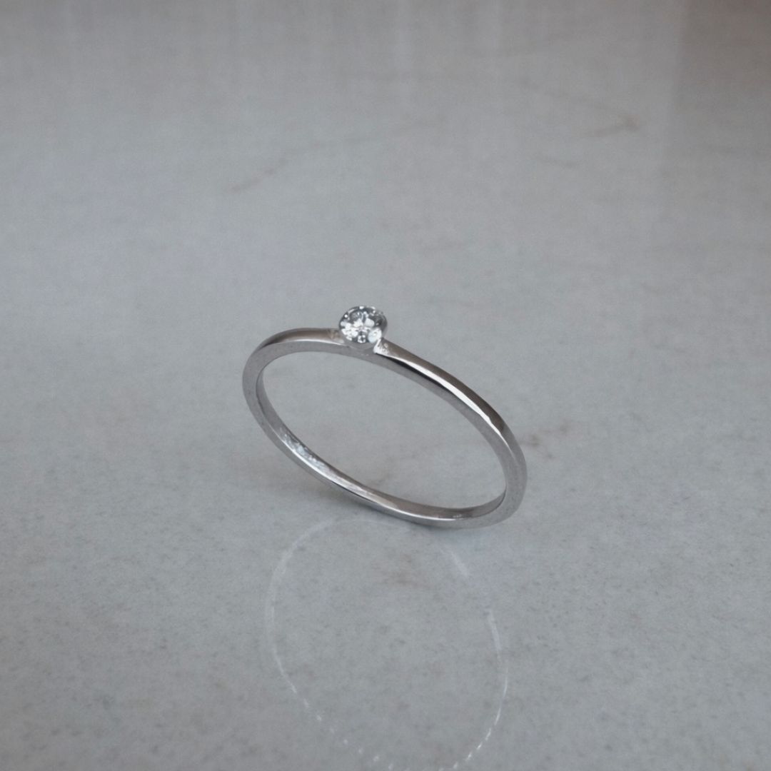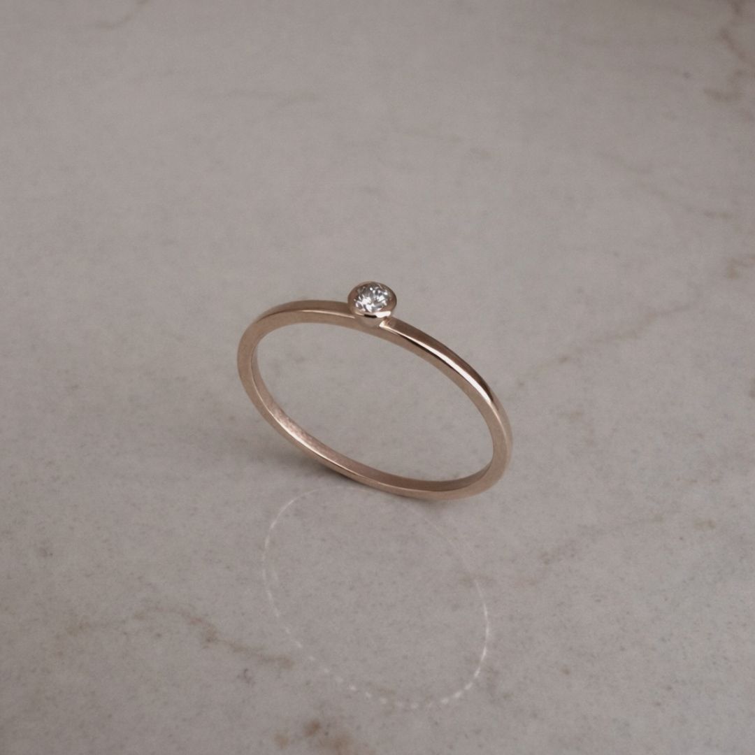 Fijne 14K gouden ringband (wit of geel goud) met mini diamant.